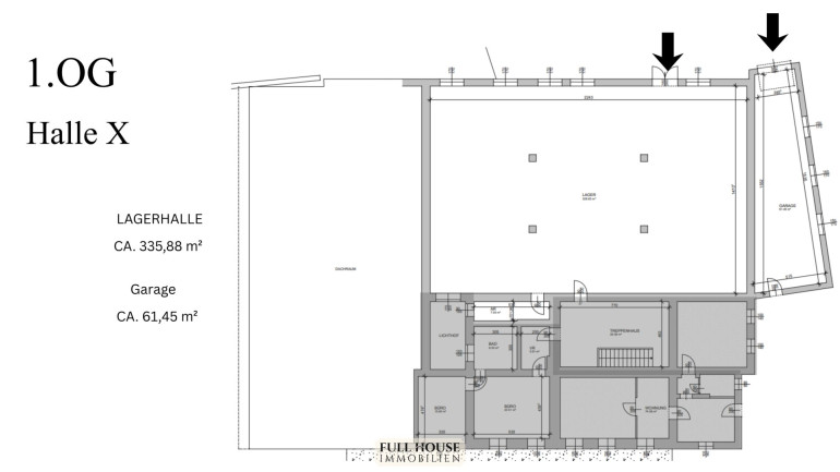In der oberen Ebene des Business-Hubs gelangt diese ca. 335,88 m² große Hallenfläche zum Verkauf. Die Einheit, die vormals als Tischlerei genutzt wurde, bietet eine solide Grundsubstanz für handwerkliche Betriebe, Produktionsstätten oder kreative Loft-Büros.