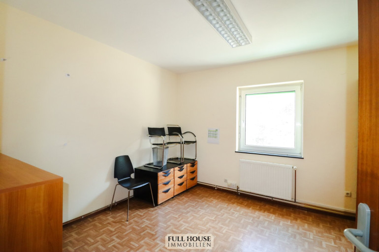 Ideal für Freiberufler oder kleine Teams präsentiert sich diese funktionale Einheit auf der linken Seite des Gebäudes. Das Büro ist klug in zwei separate, vollwertige Zimmer unterteilt, was eine klare Trennung von Arbeitsbereichen oder die Nutzung als Partner-Büro ermöglicht. Ein zentraler Vorraum verbindet die Räumlichkeiten und führt zum eigenen Sanitärbereich.