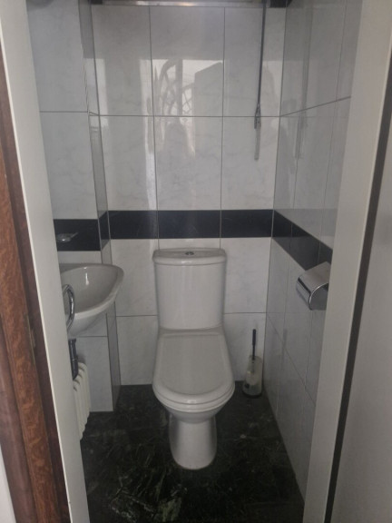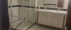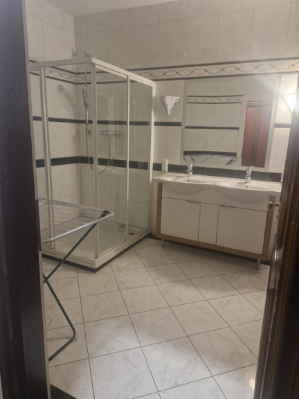 - Bad mit Dusche und Doppelwaschbecken, Mamorfliesen