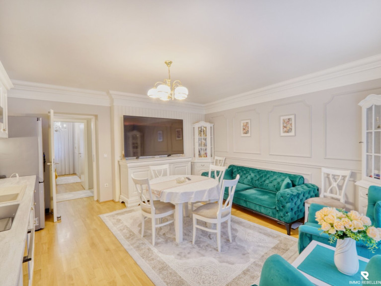 Auf 77,62 m² bietet Ihnen diese Wohnung eine optimal durchdachte, zentral begehbare Raumaufteilung. Jeder Raum ist separat zugänglich – perfekt für Familien, Paare oder auch eine WG. Die stilvolle Renovierung im Altbaustil mit liebevollen Stuckdetails und feinen Wandverzierungen verleiht der Wohnung einen ganz besonderen Charakter und eine elegante, warme Atmosphäre.