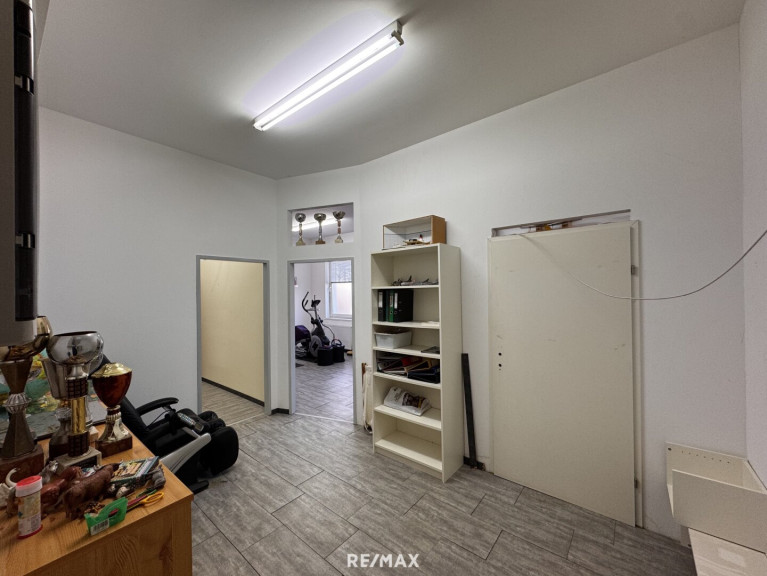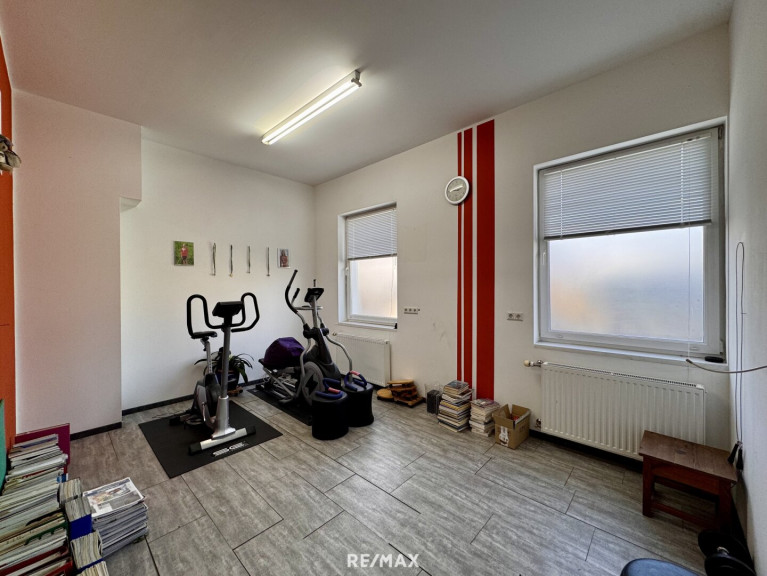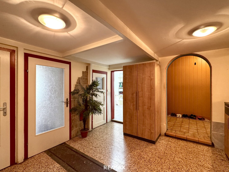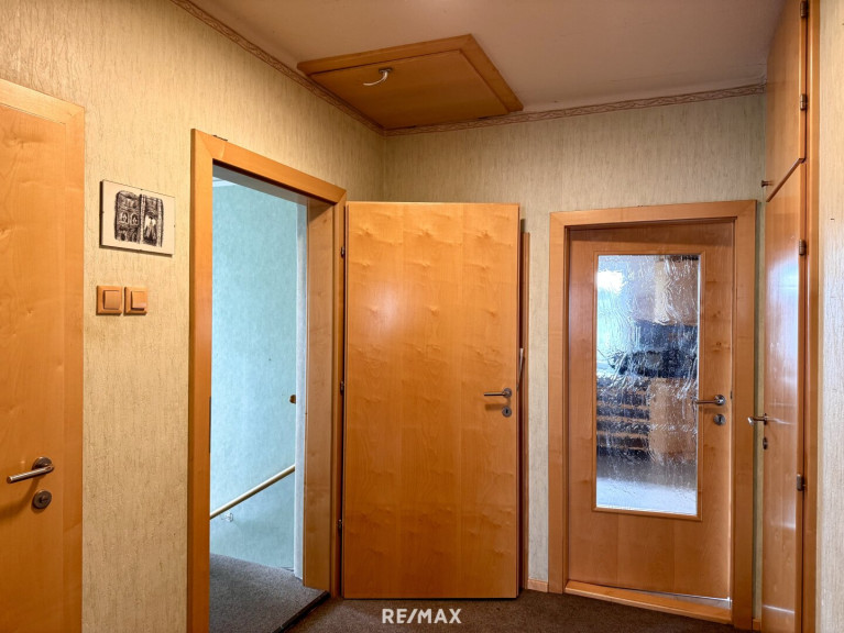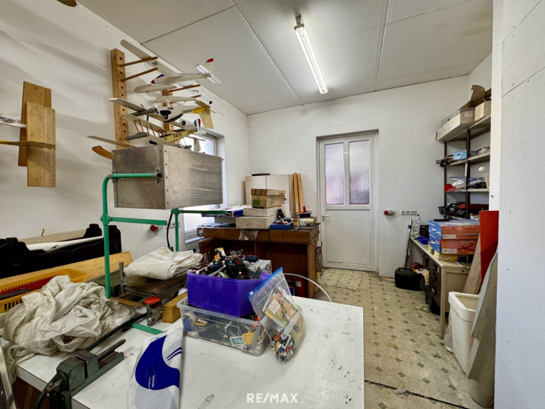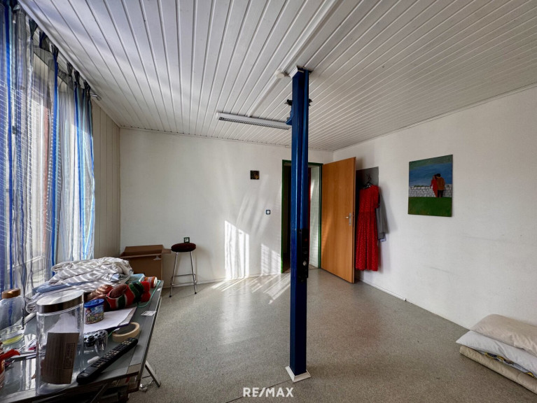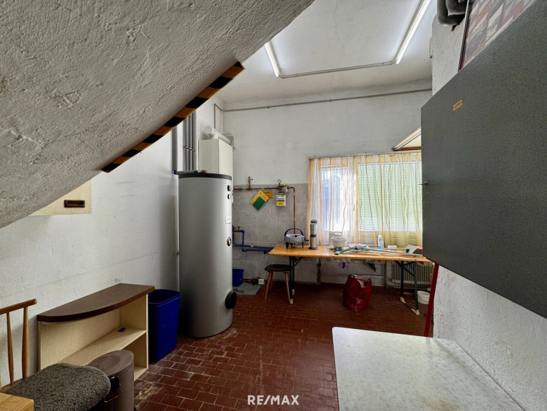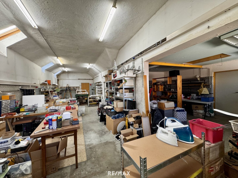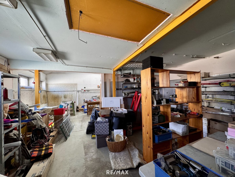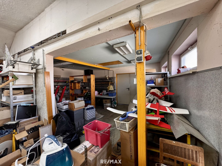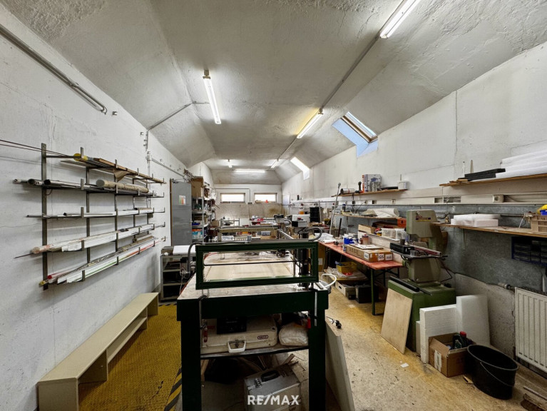 Im Erdgeschoss dieses Einfamilienhauses stehen ca. 238 m² Nutzfläche zur Verfügung. Diese gliedert sich in eine großzügige Werkstatt, 2 Büroräume sowie 6 Lagerräume.