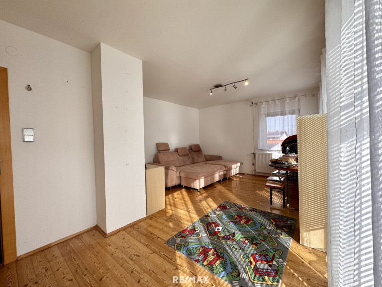 Im Obergeschoss befindet sich die ca. 93 m² große 3 Zimmer Wohnung. Ein besonderes Highlight ist die ca. 34 m² große Terrasse, die zum Entspannen, Verweilen oder geselligen Beisammensein einlädt. Die großzügige Wohnküche wird möbliert übergeben.