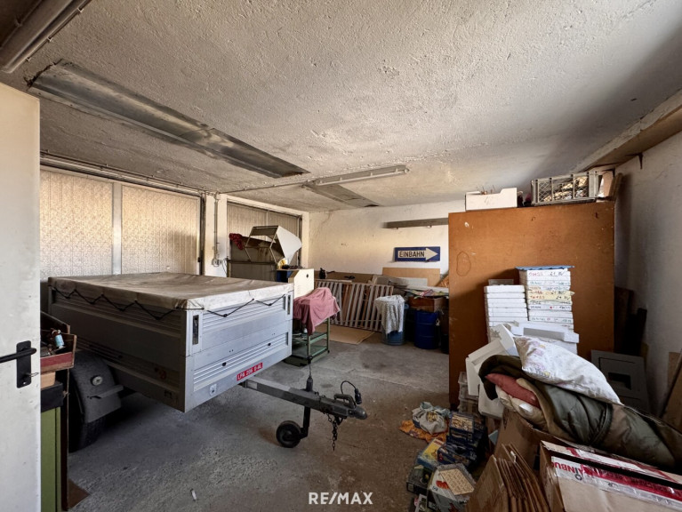 Ergänzt wird der Gewerbebereich durch zwei Garagen sowie einen überdachten Vorplatz, der sich ideal als Kfz-Unterstellmöglichkeit oder für Lade- und Liefertätigkeiten eignet.