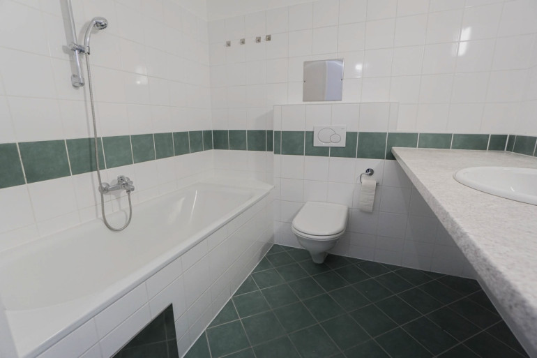 - Badezimmer inklusive Badewanne, Waschmaschinenanschluss und WC