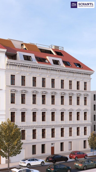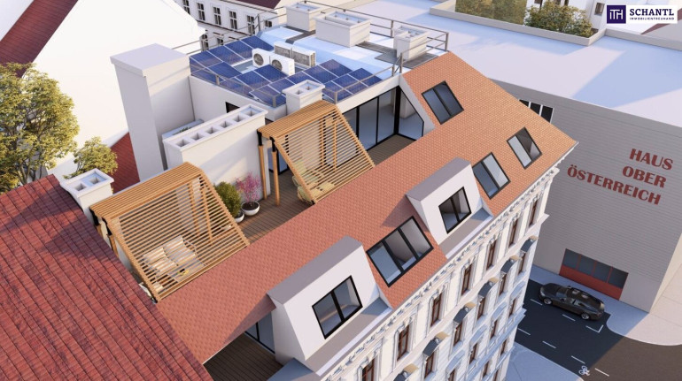 Wenn Sie nach unten schauen, liegt Ihnen die Stadt zu Füßen. Kopf hoch, und der Himmel über Wien ist zum Greifen nah. Genau so und nicht anders präsentiert sich dieses wunderbar angelegte Dachgeschoss mit all seinen Highlights. In dieser großartigen 3-Zimmer-Wohnung erwartet Sie ein zentraler Vorraum mit ausreichend Platz für die Garderobe, ein geräumiges Badezimmer mit Dusche und Fenster, zwei schöne Schlafzimmer mit ca. 18 m² und 16 m², ein separates WC mit Handwaschbecken, sowie der lichtdurchflutete, gut 36 m² große Wohn-Essbereich, mit Kochgelegenheit und Ausgang zur ca. 8,3 m² großen, sonnigen Loggia/Terrasse in Richtung Süden. Diese Wohnung ist einfach genial!