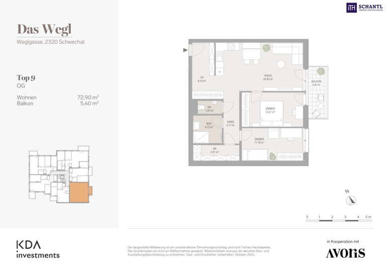 Wohnfläche: ca. 72,90 m² + Balkon: ca. 5,40 m² + Kellerabteil: ca. 2,66 m²
