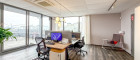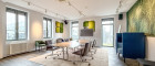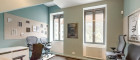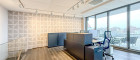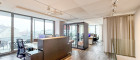 - 1 Großraum mit riesigen Verglasungen inkl. Schiebeelementen sowie mit Decken-Akustikpaneelen