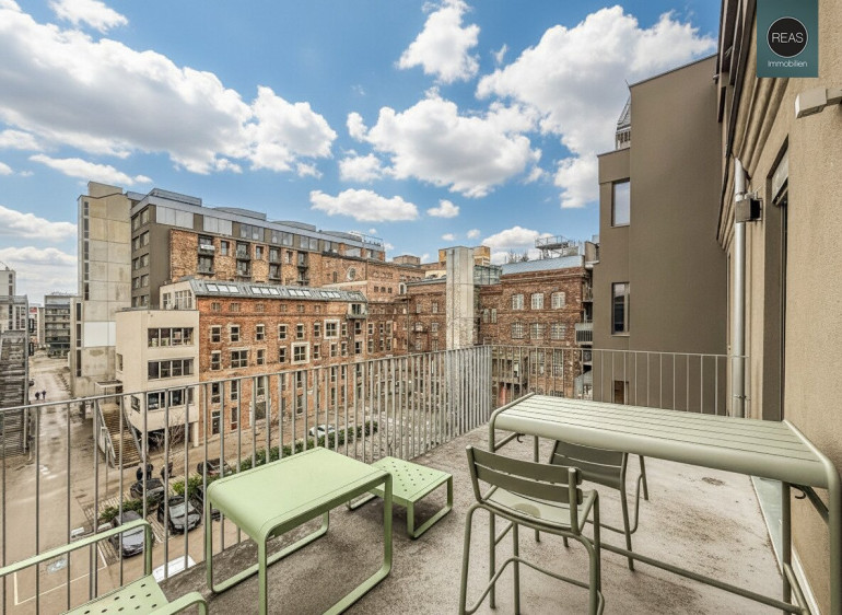 - 1 Balkon direkt angrenzend mit herrlichem Blick auf die Backsteingebäude der Brotfabrik Wien