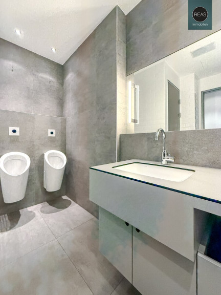 - 1 Herren-WC mit WC, 2 Pissoir und Waschraum