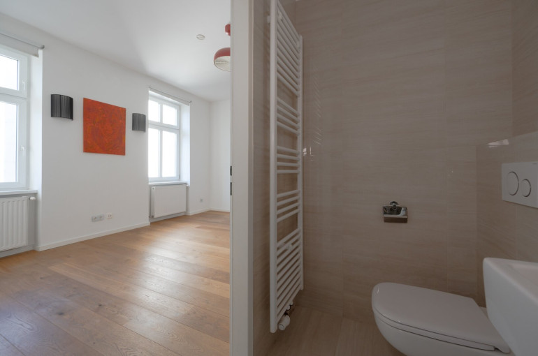 Die Wohnung ist über die Straßenbahnlinie 5 und die U-6 perfekt öffentlich angebunden. Mit dem Auto ist man blitzschnell am Lerchenfeldergürtel.