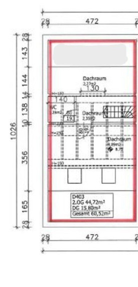 - 2. Obergeschoss: Diele, Abstellraum, Bad mit Dusche und WC, Küche, Wohn-Essbereich mit Zugang zur großen südseitigen Terrasse (ca. 13 m²)