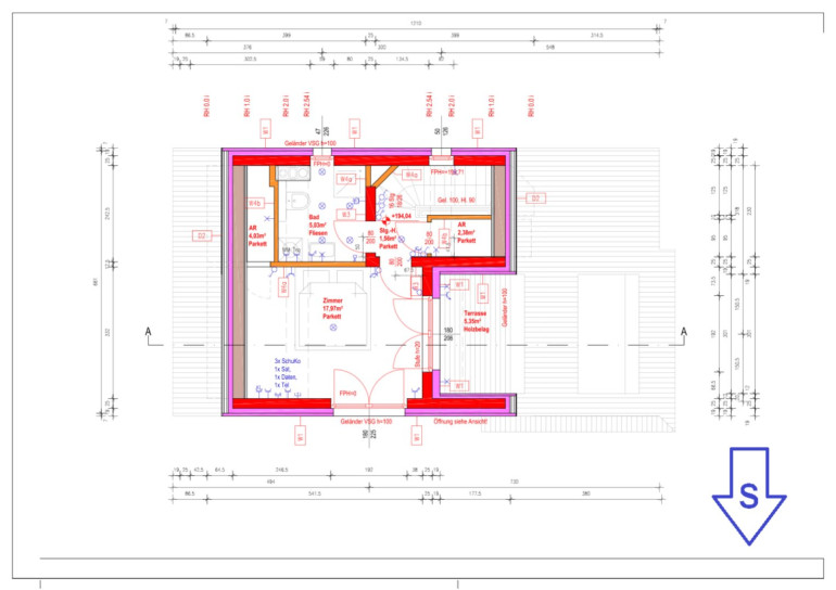 Dachgeschoss - 36m² : Das 18m² Schlafzimmer ist südostseitig und hat eine anschließende 5m² Ostterrasse. Das Badezimmer ist mit einem Fenster, einer Dusche, einem Waschbecken, einem WC und einem Waschmaschinenanschluss versehen. Weiters gibt es 2 Abstellräume.