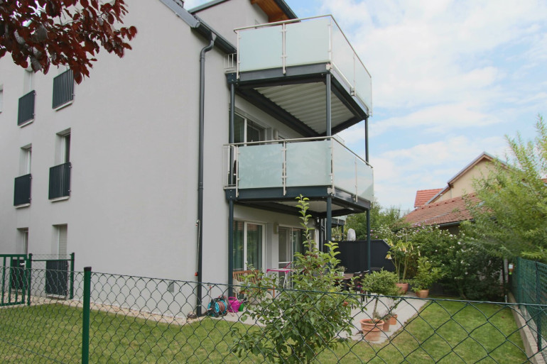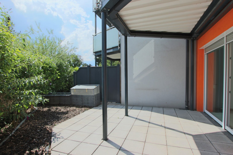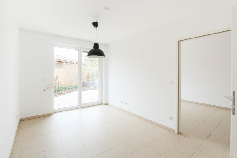 Die Wohnung überzeugt durch einen lichtdurchfluteten Wohnbereich mit offener, moderner Einbauküche und direktem Zugang zur Garten-Terrasse. Das Schlafzimmer verfügt ebenfalls über einen Ausgang ins Freie. Das Badezimmer ist mit einer Badewanne ausgestattet, die Toilette befindet sich separat. Ein praktischer Abstellraum sorgt für zusätzlichen Stauraum.