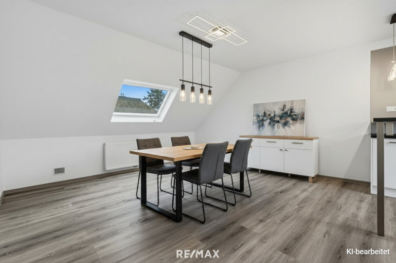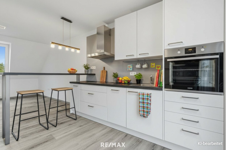 Genießen Sie die Vorzüge einer offenen Wohnküche, die mit einer modernen Einbauküche ausgestattet ist – perfekt für gesellige Abende und kulinarische Experimente. Die angenehme Etagenheizung sorgt für ein warmes Zuhause, während die Klimaanlage an heißen Sommertagen für Erfrischung sorgt.