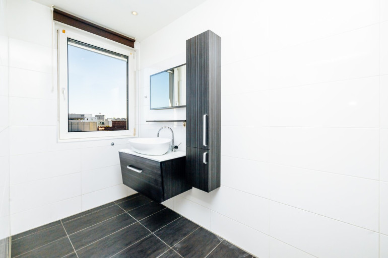 - Das Badezimmer präsentiert sich in heller Optik und ist mit einer praktischen Dusche ausgestattet – funktional, modern und alltagstauglich.