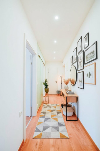 Bereits beim Betreten empfängt Sie ein freundlicher, heller Flur, von dem aus Sie alle zentralen Räume erreichen. Die großzügige Küche ist nicht nur funktional, sondern auch ein Ort zum Wohlfühlen. Hier haben Sie alles, was das Herz eines Hobbykochs begehrt – vom modernen Ceranfeld über Backrohr bis hin zum Kühlschrank.