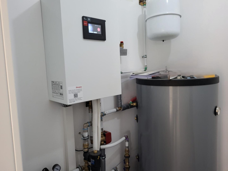 - Fußbodenheizung mit Luftwärmepumpe (Dimplex)