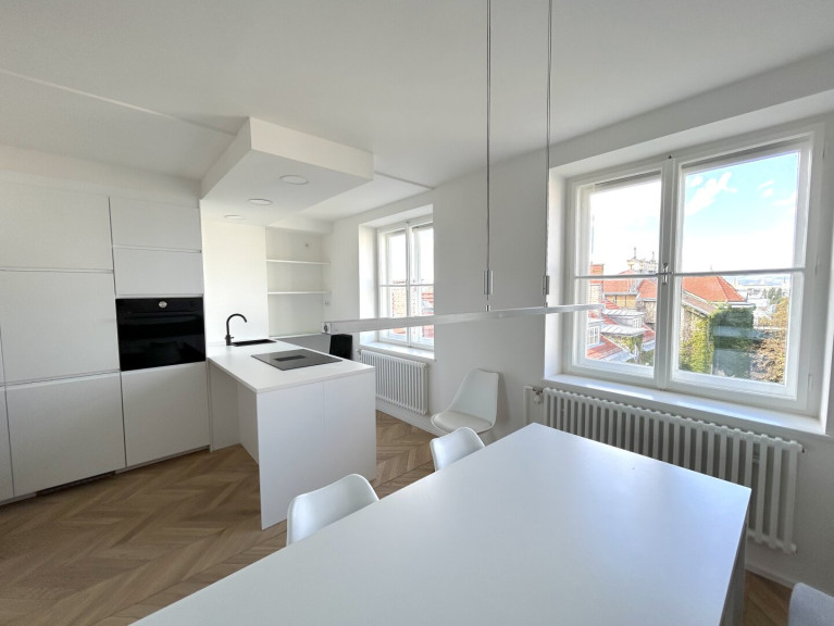 Ob Stadt- und Fernblick oder beruhigendes "Grün" – hier wird jede Ansicht zum Erlebnis. Die Kombination aus eleganten Fliesen und hochwertigem Parkett verleiht der Wohnung eine stilvolle Atmosphäre. Die offene Wohnküche mit modernen Geräten und viel Platz zum Kochen lädt zum Verweilen ein.