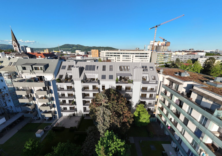 Die Wohnungen bieten großzügige Balkone oder Loggien, vereinzelt auch weitläufige Terrassen oder einen privaten Garten. Die Außenbereiche laden zum Entspannen und Genießen der in der frischen Luft ein. Vor allem die exklusiven zweigeschossigen Mansarden-Wohnungen von 101 bis 164 m² sind besonders reizvoll.