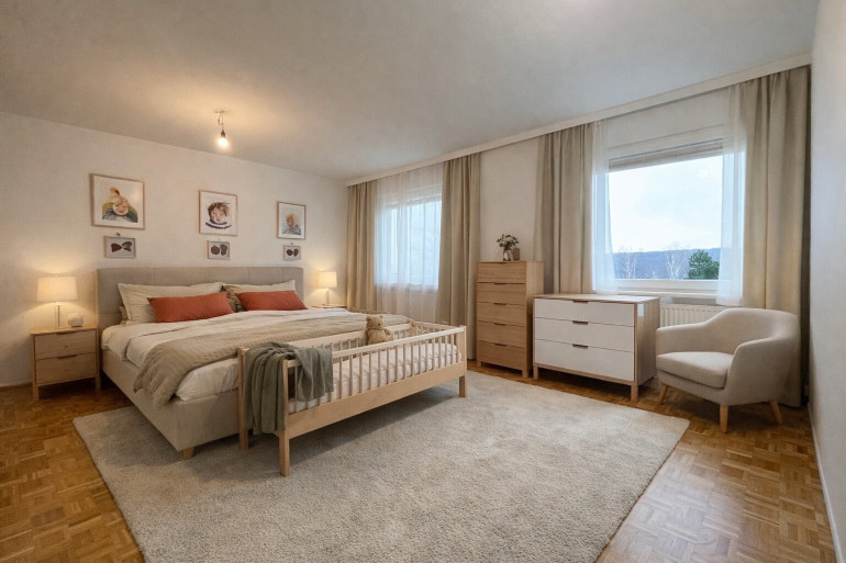 - Insgesamt stehen 4 Schlafzimmer zur Verfügung, die flexibel als Kinder-, Gäste- oder Arbeitszimmer genutzt werden können.