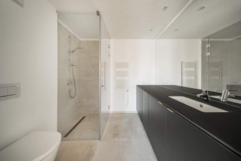 - Edler Parkettboden und großformatige Fliesen in den Nassräumen