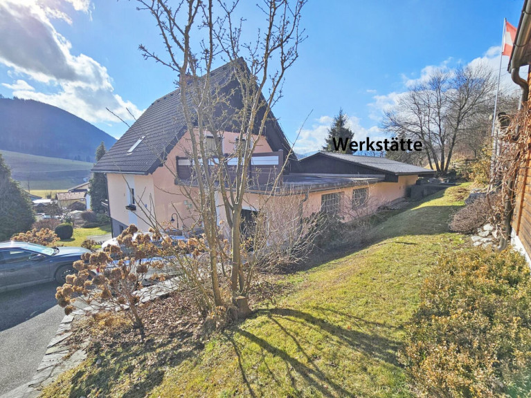Einfamilienhaus mit 2 Terrassen, 2 Balkone, Nebengebäude mit Garage und Werstätte ( mit Tischlergeräten )
