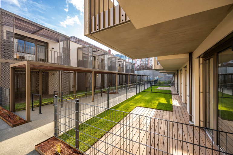 Jede Wohnung ist nicht nur mit einer Freifläche ausgestattet, sondern weißt auch hochwertige Materialien als auch Ausstattung aus: