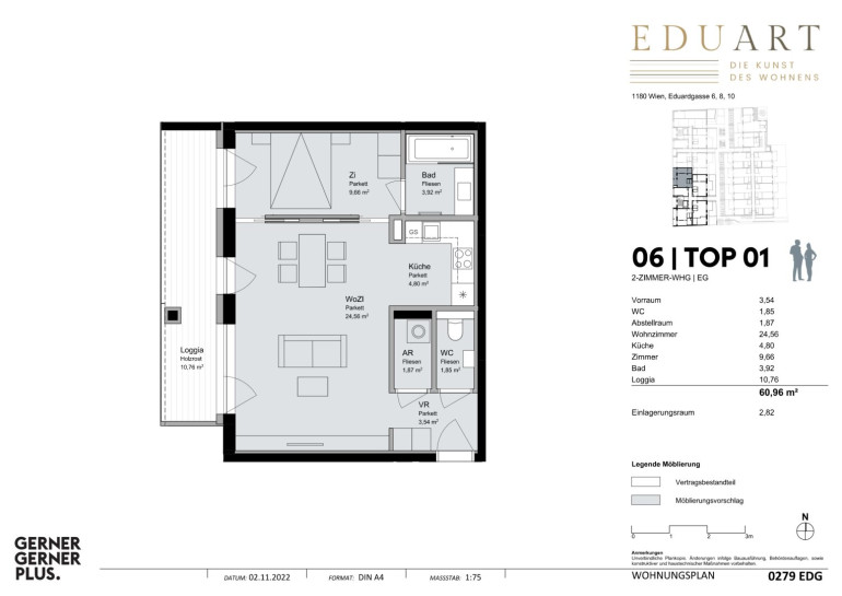 Beim Projekt EDUART handelt es sich um einen außergewöhnlichen Neubau bestehend aus drei Trakten mit Tiefgarage, welcher nicht nur durch seine flexiblen und intelligent geplanten Grundrisse und die großzügige Planung von Balkon/Loggien- Garten und Terrassenflächen, sondern auch durch seine sehr gute Lage in der Nähe von Kutschkermarkt und Schubertpark besticht.