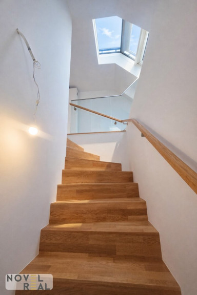 - Wohnräume: Großzügige, lichtdurchflutete Zimmer mit edlen Holzböden und weitläufigen Fensterfronten schaffen eine Atmosphäre von Klarheit und Eleganz. Die modernen Dachschrägen verleihen den Räumen Charakter und Behaglichkeit.