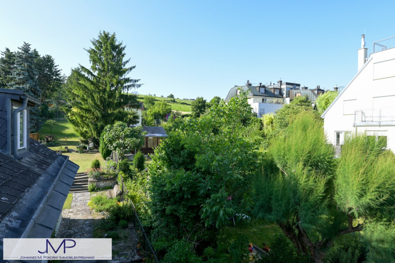 Die Richtung Norden orientierte ruhige Liegenschaft liegt am Fuße des Nußbergs, gleich in der Nähe der Endstation der Linie D, am Rande von Nußdorf.