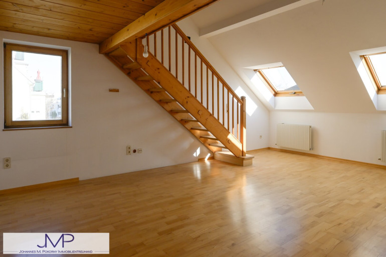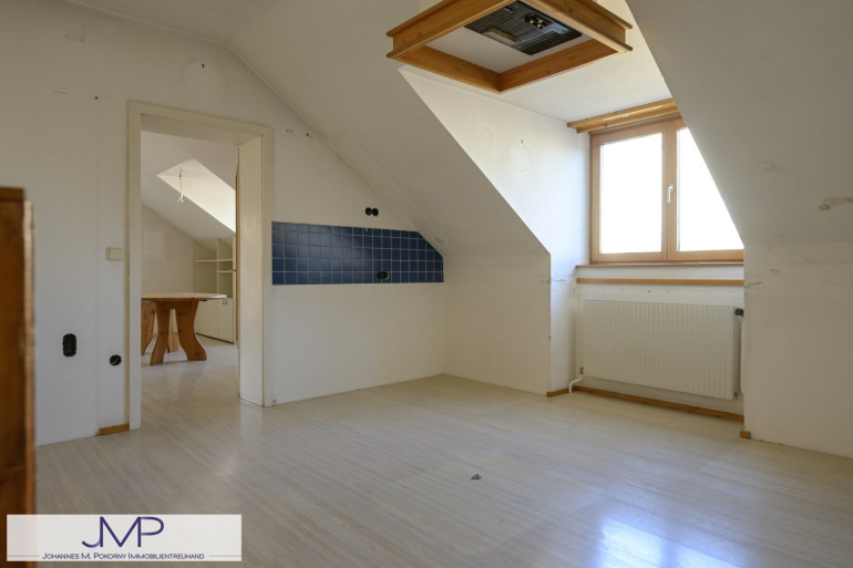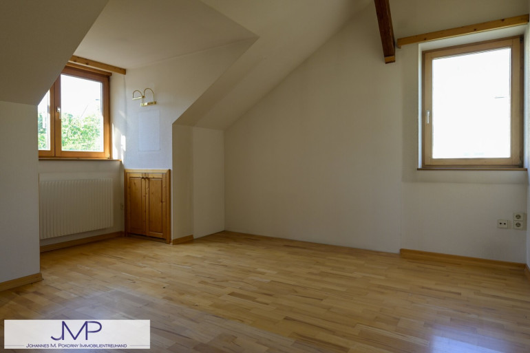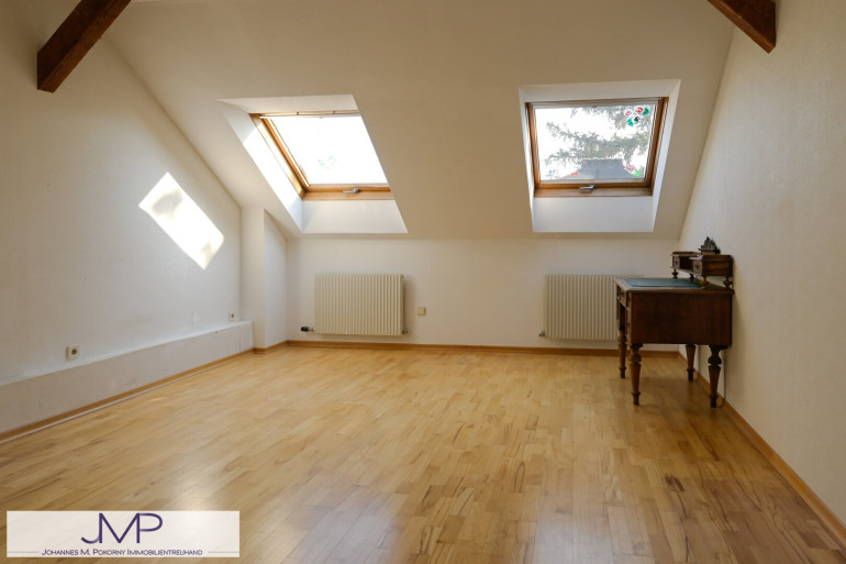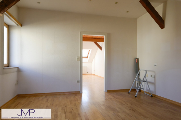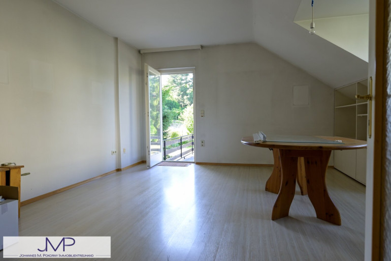 Das DG bietet drei größere Zimmer, sowie einen ehemaligen Küchenbereich und eine ca. 25m² große Terrasse mit Blick in den schönen Garten.