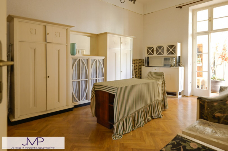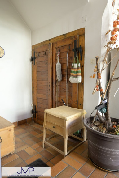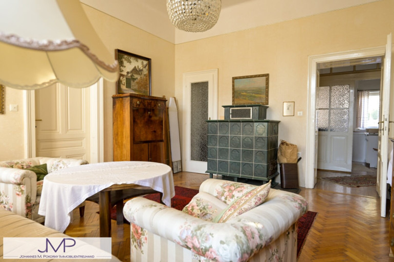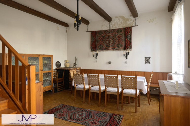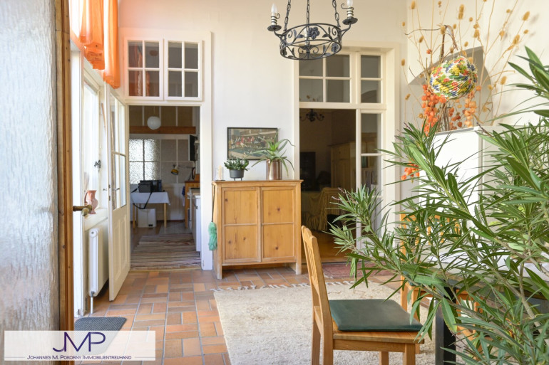 Das EG besteht dabei aus zwei schönen straßenseitigen Zimmern und besitzt das größere davon noch einen gut funktionierenden Kachelofen, der Abends angenehm-wohlige Wärme verbreitet. Ein weiteres Zimmer im Mittelbereich des Hauses, würde sich unter Umständen als Essbereich und Ergänzung zur derzeitigen Küche eignen und ließe sich darüber hinaus der gartenseitige Wohnraum, zusammen mit einem Vorraum zu einem großen Wohnessbereich integrieren.