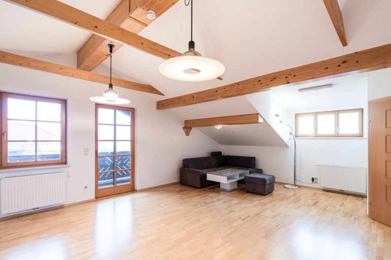 3-Zimmer-Dachgeschosswohnung in kleinem Mehrparteienhaus in Wals-Viehhausen, ca. 75 m² Wohnfläche und schönem Sonnenbalkon. Sehr gepflegter Gesamtzustand, zeitlos-klassische Ausstattung mit Sichtdachstuhl.