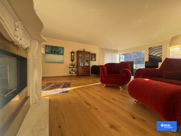 Steinboden, Parkett, Fliesen, Fußbodenheizung, Kamin, Einbauküche, Wohnküche / offene Küche, Ostbalkon, Westbalkon, Bad mit Fenster, Dusche, Garage, Parkplatz, Wasch/Trockenraum