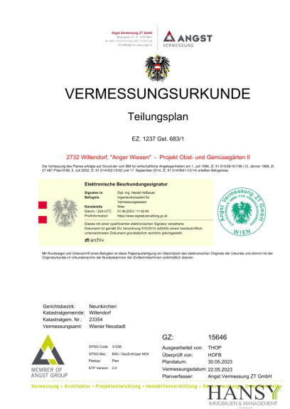 Das Unternehmen Hansy GmbH wurde exklusiv beauftragt dieses Grundstück zu vermarkten und anzubieten. Es besteht kein Naheverhältnis zum Eigentümer.