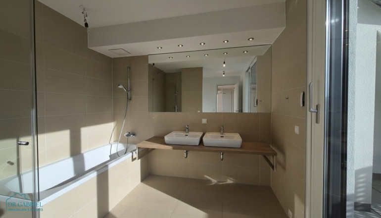 2. Ebene: Wihn-Esszimmer mit offener Küche und Ausgang auf die Terrasse, ein Schlafzimmer mit Terrasse, Bad mit Wanne, Dusche, Dioppelwaschbecken, separates WC