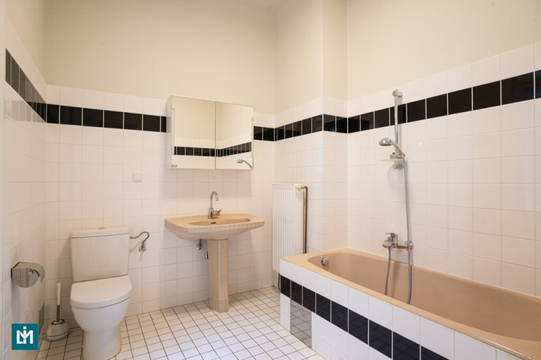 - Badezimmer mit Wanne, WC und Fenster