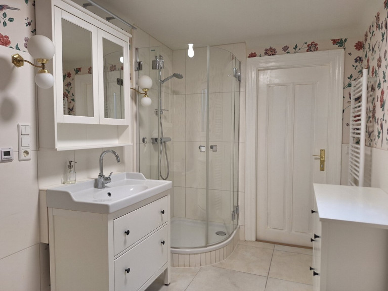 An Allgemeinflächen stehen Ihnen ungewöhnlicherweise nicht nur ein Trockenraum und ein Abstellbereich für Fahrräder und Kinderwägen, sondern auch ein Raum für Werkarbeiten und ein kleiner Gemeinschaftsgarten zur Verfügung, und für noch mehr Stauraum sorgen ein geräumiges Kellerabteil sowie ein Lagerraum einen Halbstock tiefer. Das im Art Deco-Stil gestaltete Stiegenhaus wirkt hell und großzügig, hier wurden größtenteils die originalen Stil-Elemente erhalten. Laut Angaben der Eigentümer unterliegt die Wohnung nicht der Mietpreisbindung, da sie erst nach 1945 als solche gewidmet wurde, und ist daher auch für Anleger interessant.