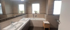 - Geräumiges Tageslicht-Badezimmer mit Badewanne, Dusche, Doppelwaschbecken und WC