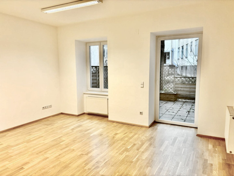 Straßenseitiges Geschäftslokal/ Büro/ Studio/ Ordination/ mit einer Fläche von 118,41m² und einer Hofterrasse von ca. 26m² und 2 weiteren Eingänge im Stiegenhaus.