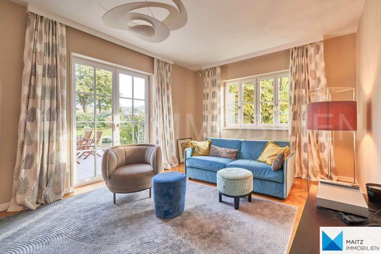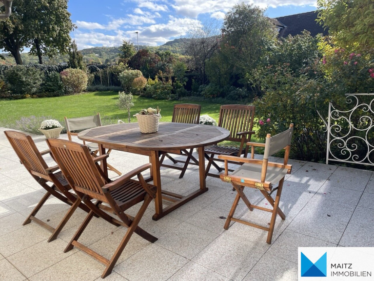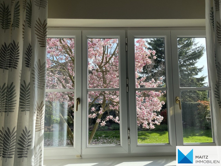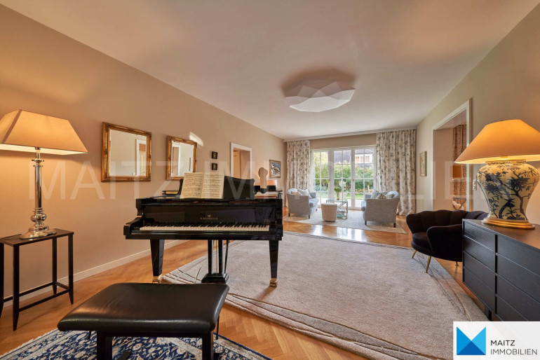 Vier Zimmer bieten direkten Zugang zur süd-westseitigen Terrasse mit Blick in den prächtigen Garten. Nord-ostseitig kann der Tag auf einer gemütlichen 8,4m²-Terrasse in der Morgensonne begrüßt werden.
