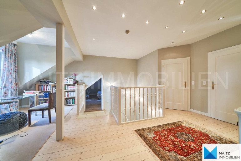 Im Galeriezimmer ist derzeit ein kleines Homeoffice eingerichtet ist. Die hier vorbereitenten Küchenanschlüsse können genutzt werden, falls man das DG zur einer eigenen Wohneinheit umgestalten möchte.
