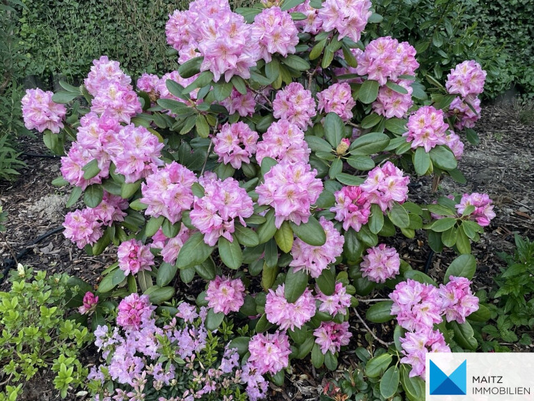 Erhebliche Investitionen sind in den Garten geflossen. Abgestimmte Blühzeiten und pflegeleichte, immergrüne Bepflanzung in Kombination mit automatisierter Bewässerung waren maßgebliche Aspekte der Gestaltung.
