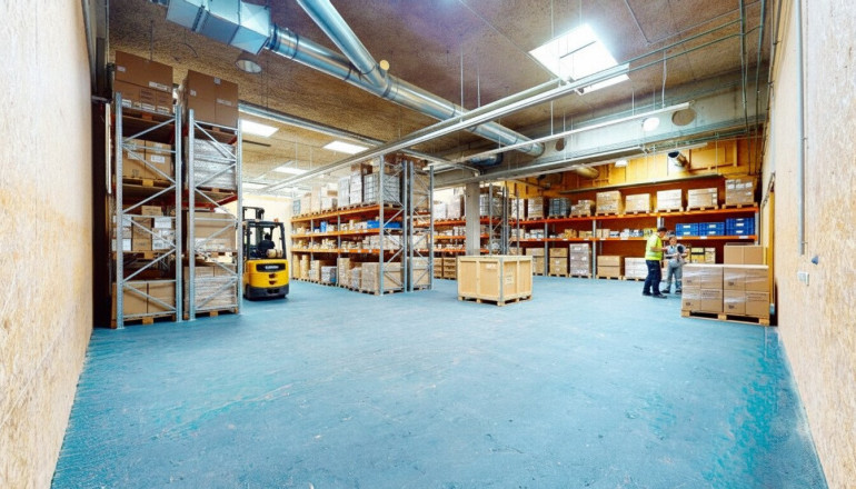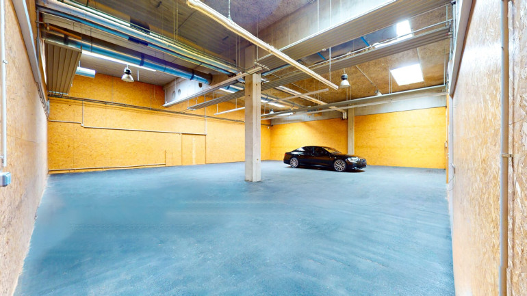 Die effektive Nutzungshöhe wird durch Heizungen und Leitungen auf ca. 3,84 m begrenzt, dazwischen bleibt jedoch ausreichend Raum, um beispielsweise höhere Regale, Zwischenkonstruktionen oder Einbauten zu realisieren. Damit eignet sich die Halle nicht nur als klassische Lagerfläche, sondern auch als Produktionshalle, Werkstatt oder Showroom. Das Objekt ist ebenerdig zugänglich und über ein Sektionaltor mit ca. 3,0 m x 3,1 m (H x B) sowie eine danebenliegende normale Eingangstür (ca. 0,9 m x 2,0 m) erreichbar.