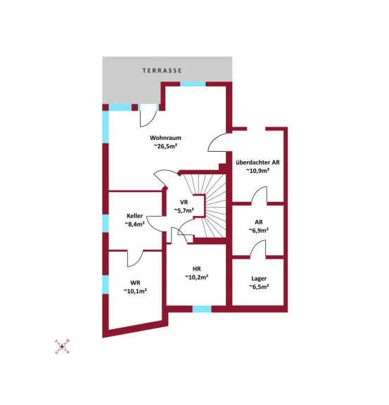Mit einem großzügigen Raumangebot von 127,62 m² verteilt auf vier lichtdurchflutete Zimmer im Erdgeschoß und Obergeschoß und einem zusätzlichen großen Wohnraum (26,5 m²) im tieferen Geschoß mit vorgelagerter Terrasse bietet dieses Haus ausreichend Platz für alle Ihre Wohnträume. Das gepflegte Haus ist voll unterkellert und durch die Hanglage sind die Räume nach Südwesten im Untergeschoss mit einem Wohnraum ebenso hell und gut ausgestattet wie die oberen beiden Ebenen.