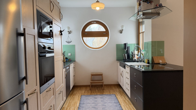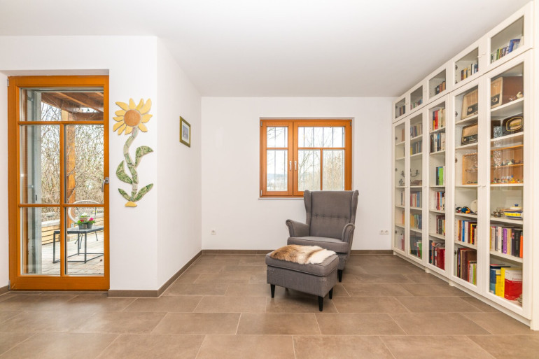 Die Innenräume wurden teilweise 2020 noch moderner ausgestattet und mit neuen Bodenbelägen versehen. Auch die Badezimmer wurden kürzlich erst renoviert (2021) und entsprechen modernen Anforderungen. Die Küche ist mit Miele-Geräten ausgestattet und wurde zum Wohnzimmer geöffnet. Eine Fußbodenheizung in den Nassräumen ergänzt die Radiatoren in den Wohnräumen. Eine Photovoltaikanlage am Dach (6,7kW) wurde 2023 installiert erzeugt in den Sommermonaten Strom im Überfluss und schützt Sie auch im Winter vor hohen Stromkosten. Eine Batterie mit 13 kW speichert die Energie, sodass Sie den Verbrauch tagsüber nach Ihren Bedürfnissen verteilen können.