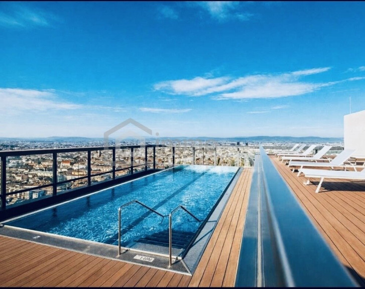 - Eine wunderschöne Gemeinschaftsterrasse mit atemberaubendem Blick auf die ganze Stadt und Pool! Also genießen Sie einen Wellnessbereich am Rooftop inklusive spektakulärem Outdoor-Pool mit Außenterrasse, Fitnessraum, Relax-Bereich sowie traumhaftem Ausblick über Wien.