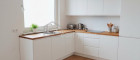 Auch die Küche könnte mit wenigen Handgriffen zum Wohnzimmer hin geöffnet werden, um ein offenes Wohnkonzept zu gestalten.