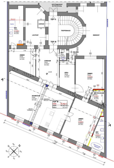 Ein Balkon in den ruhigen Innenhof schafft einen geschützten Rückzugsort. Auch technisch ist die Wohnung auf zeitgemäßem Niveau: Fußbodenheizung, Klimaanlage und Lift im Haus unterstreichen den Anspruch an komfortables Stadtwohnen.