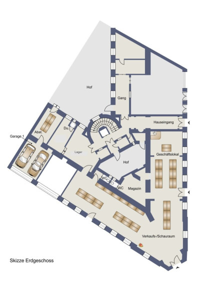 - Es besteht die Möglichkeit die 2 Geschäftslokale und 1 Garagenbox für 2 PKW mit Abstellraum getrennt zu erwerben.